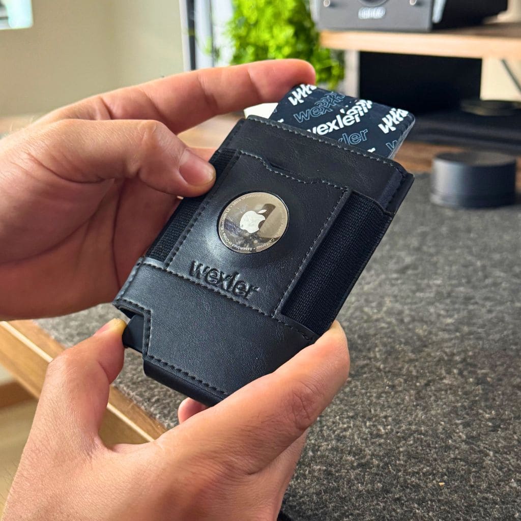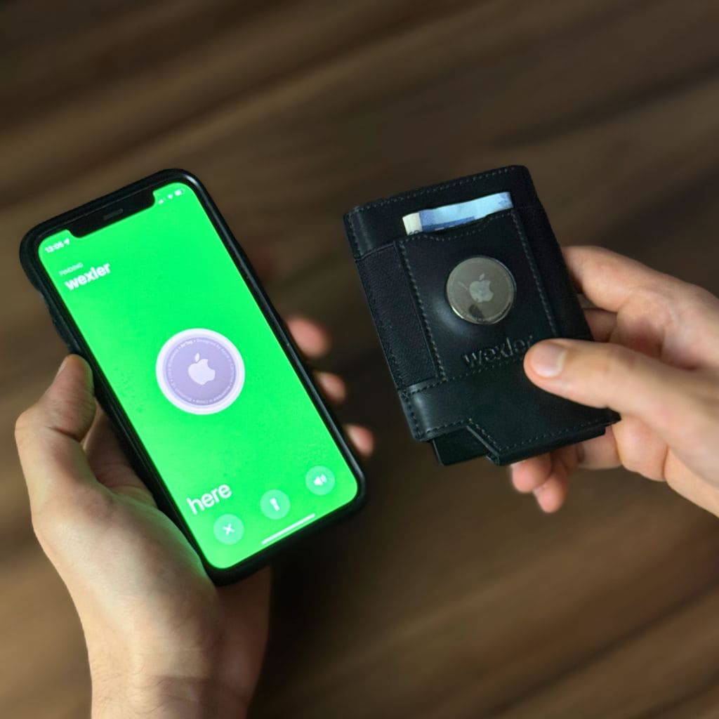 Integramos un diseño exclusivo para el AirTag de Apple, el dispositivo que te permite rastrear su ubicación fácilmente desde tu iPhone, manteniendo tu cartera siempre localizada.