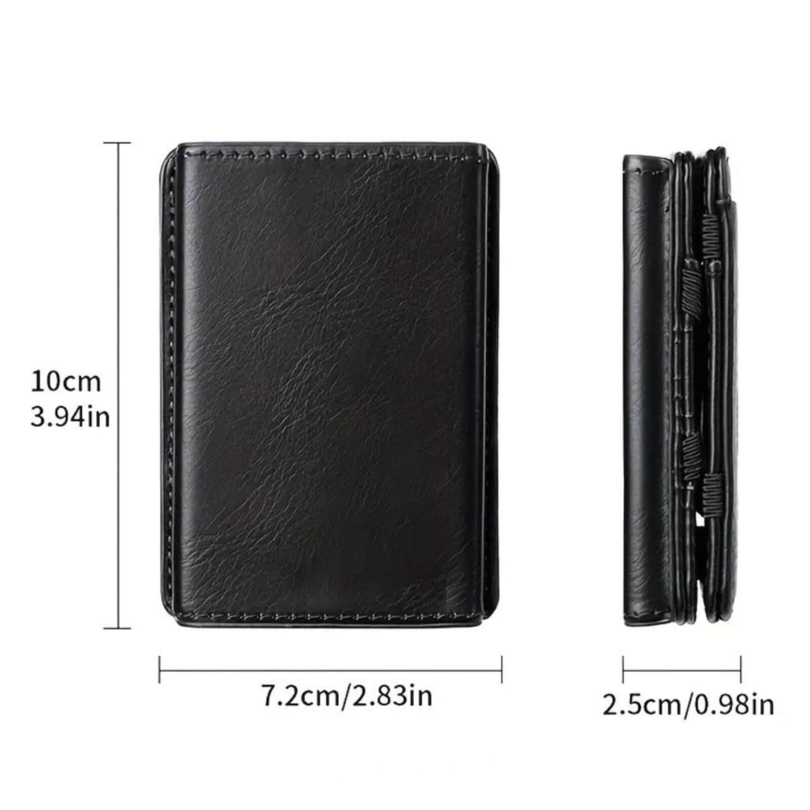La Wex Magic Wallet combina diseño innovador con practicidad. Su exclusivo compartimento mágico mantiene tus billetes siempre organizados, mientras que el mecanismo Pop-Up despliega tus tarjetas al instante con un solo movimiento. Compacta, elegante y segura, gracias a su tecnología RFID que protege tu información contra clonación.